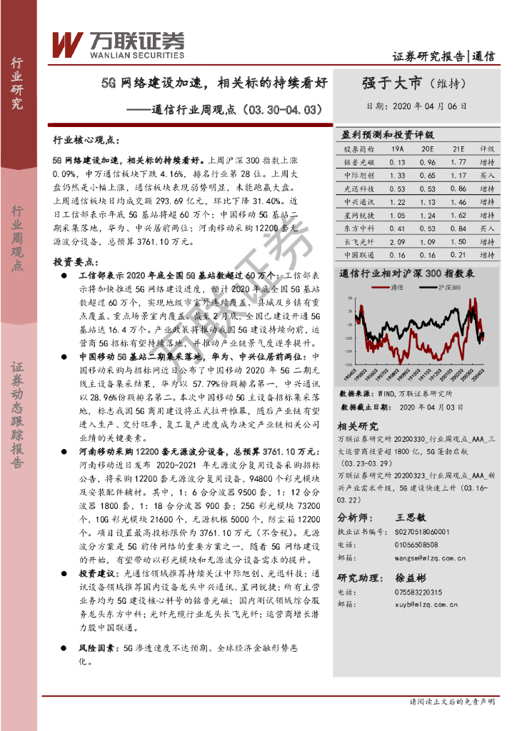 万联证券:通信行业周观点:5G网络建设加速,相关标的持续看好.pdf
