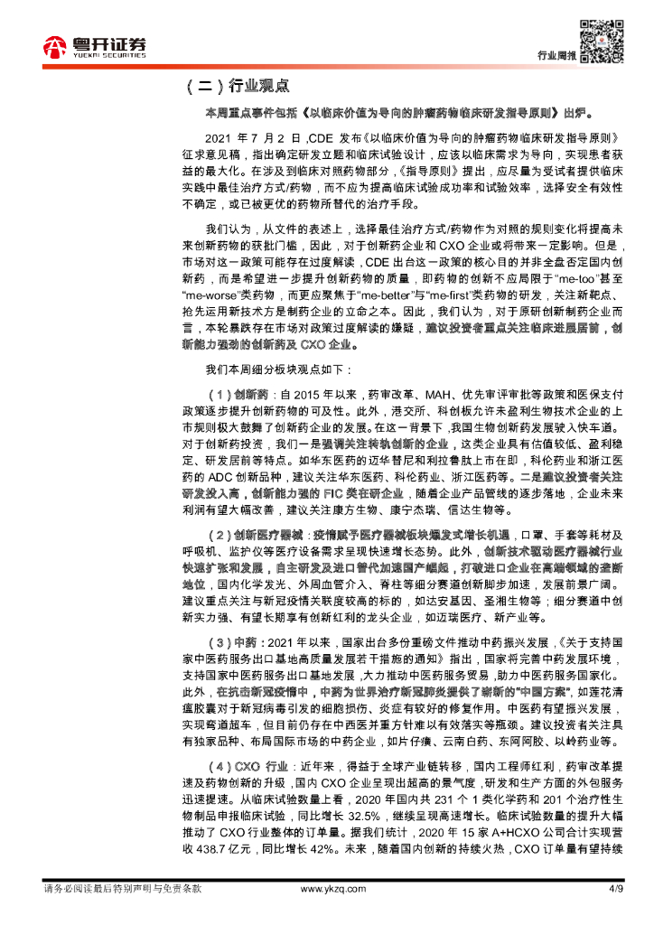粤开证券:【粤开医药行业周报】肿瘤药物临床研发指导原则出炉,创新逻辑不改.pdf