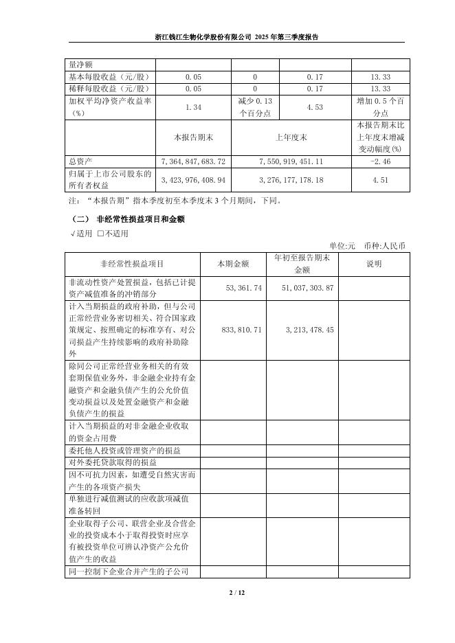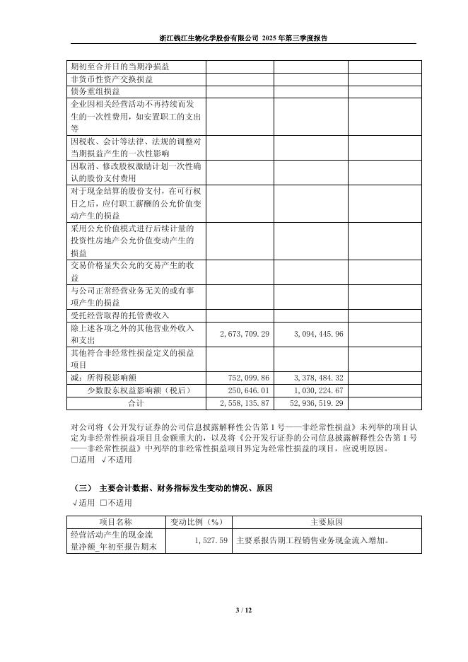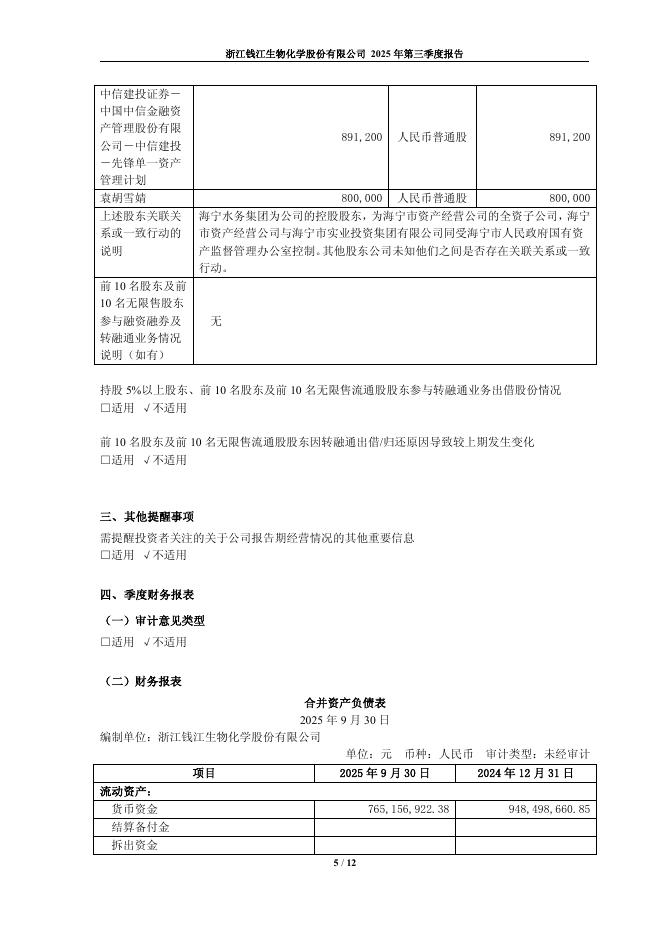 600796-钱江生化:钱江生化2025年第三季度报告.pdf
