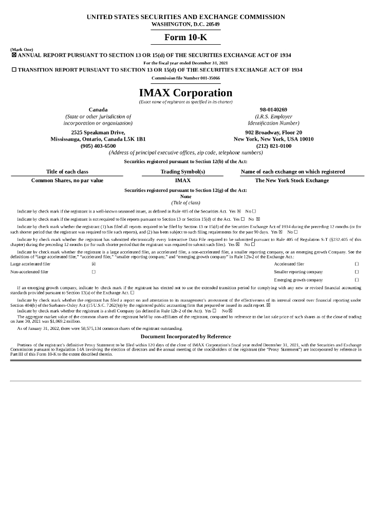 IMAX Corporation(IMAX)2021财年年度报告(英文版).pdf
