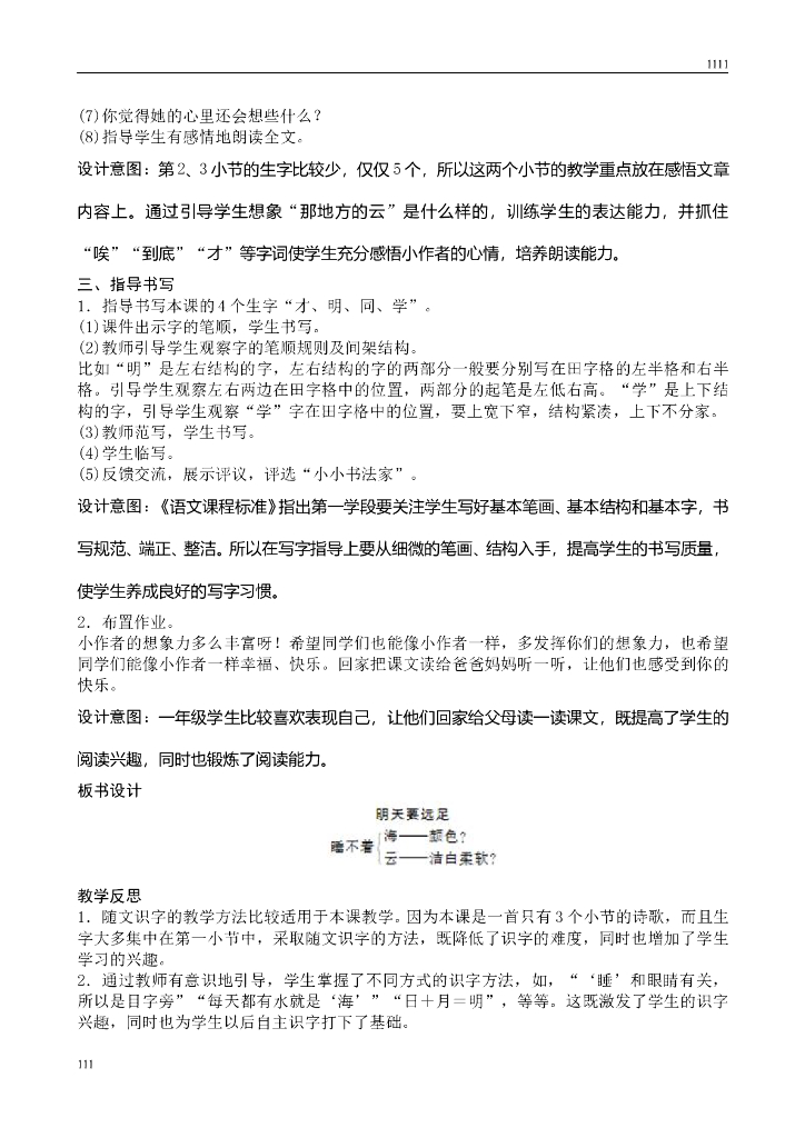 新人教版一年级上册语文第7单元教案、教学反思(含园地).doc