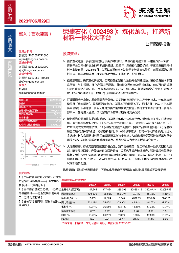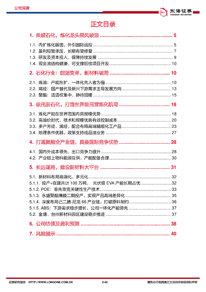 东海证券:荣盛石化(002493)-公司深度报告:炼化龙头,打造新材料一体化大平台.pdf