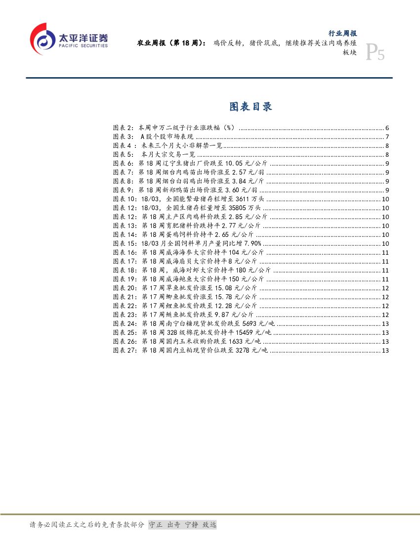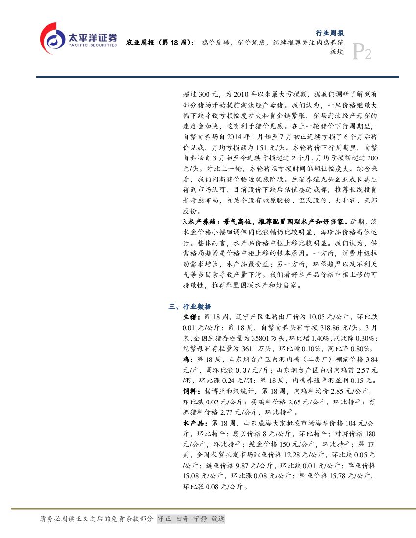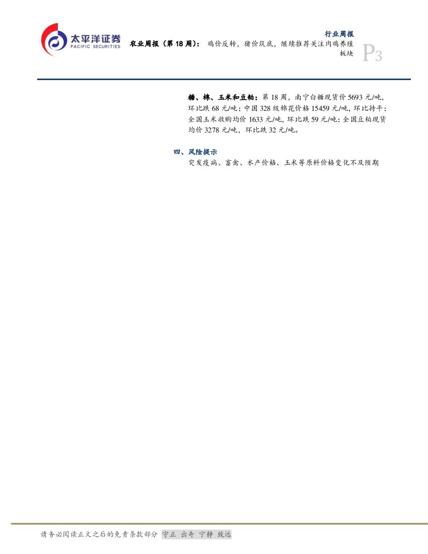 太平洋证券:农业周报(第18周):鸡价反转,猪价筑底,继续推荐关注肉鸡养殖板块.pdf