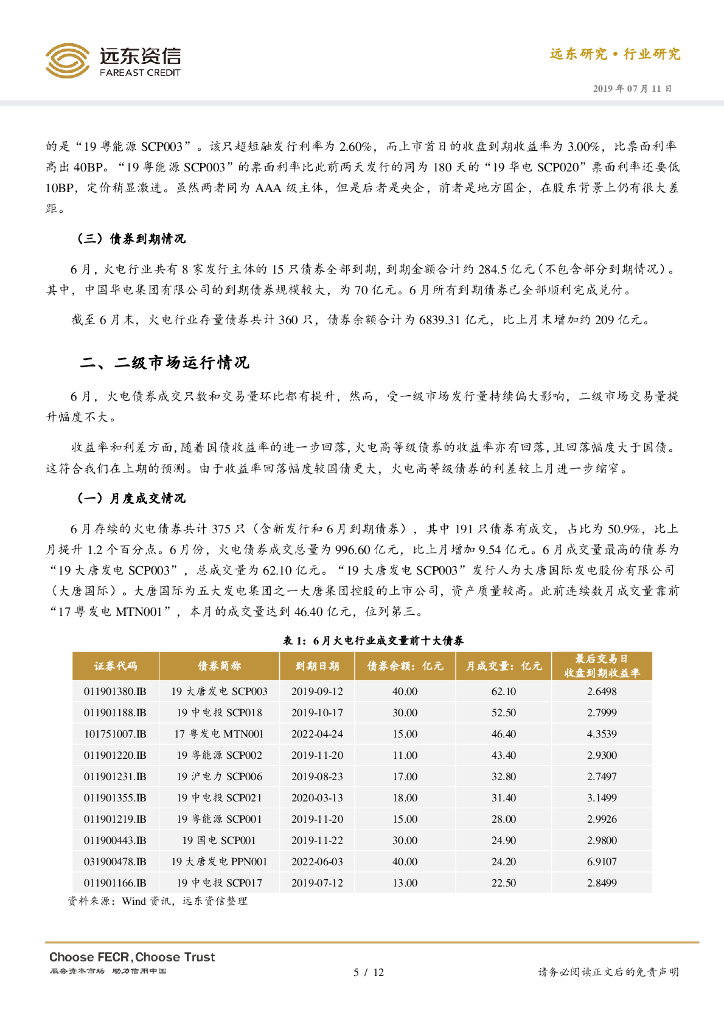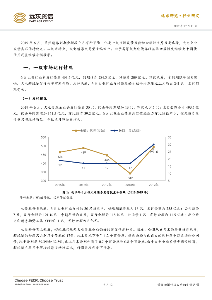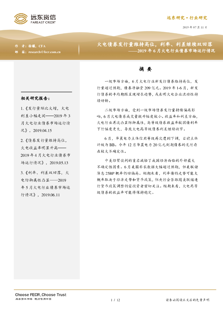 远东资信:火电债券发行量维持高位,利率、利差继续双回落——2019年6月火电行业债券市场运行情况报告.pdf