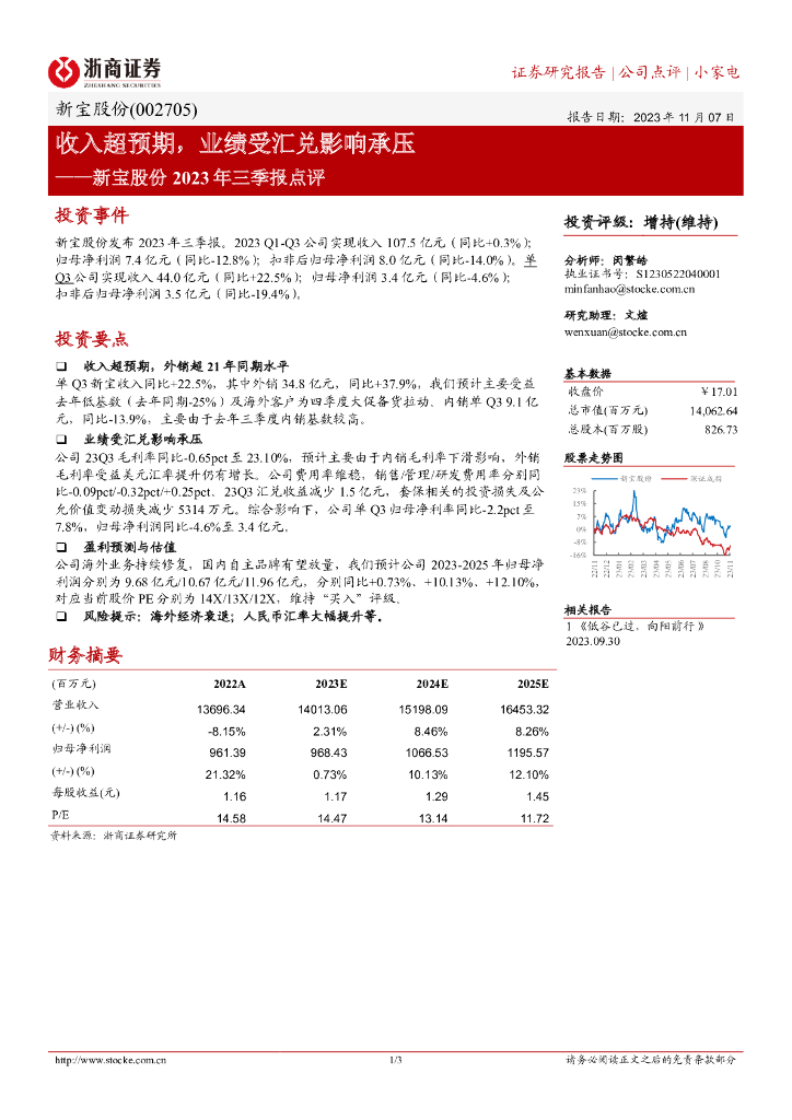 浙商证券:新宝股份(002705)-收入超预期,业绩受汇兑影响承压.pdf