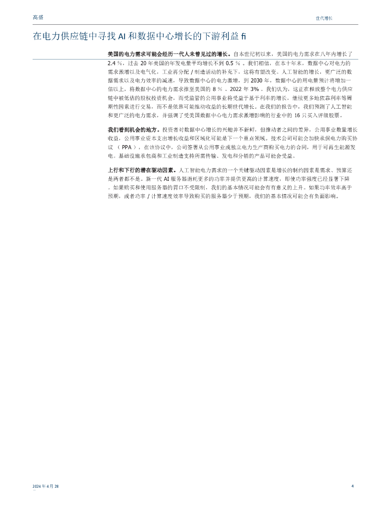 高盛:2024人工智能、数据中心和即将到来的美国电力需求激增报告.pdf
