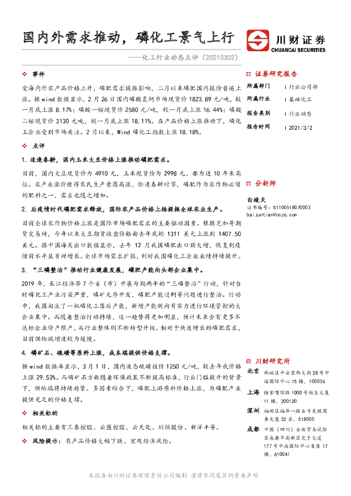 川财证券:化工行业动态点评:国内外需求推动,磷化工景气上行.pdf