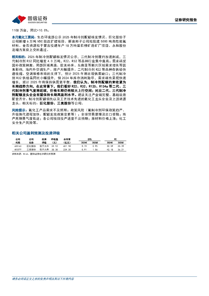 国信证券:氟化工行业:2024年12月月度观察:2025年制冷剂配额公示,一季度空调排产持续增长.pdf