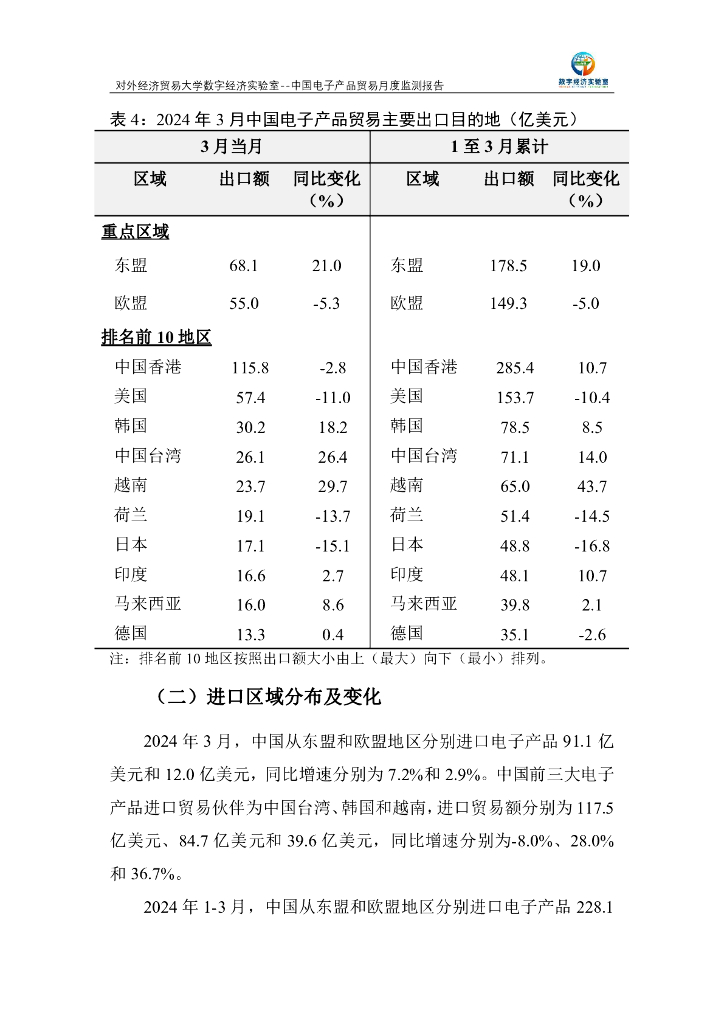 对外经济贸易大学:中国电子产品贸易月度监测报告(2024年1-3月).pdf
