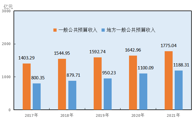 图1 2017-2021年一般公共预算收入和地方一般公共预算收入