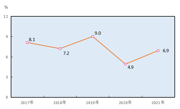 全年全部工业增加值比上年增长6.9%,其中规模以上工业增加值增长7.2%;工业增加值占GDP的比重为28.8%,比上年提升0.5个百分点。在规模以上工业中,分经济类型看,国有企业增加值增长5.8%,股份制企业增长7.7%,外商及港澳台商投资企业增长8.9%。分门类看,采矿业下降8.3%,制造业增长7.1%,电力、热力、燃气及水生产和供应业增长10.6%。
