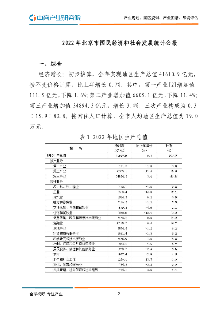 中商产业研究院:2022年北京市国民经济和社会发展统计公报.pdf