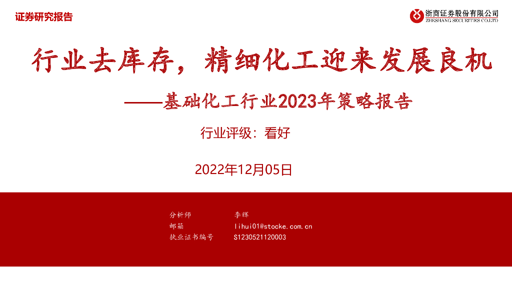 浙商证券:基础化工行业2023年策略报告:行业去库存,精细化工迎来发展良机.pdf