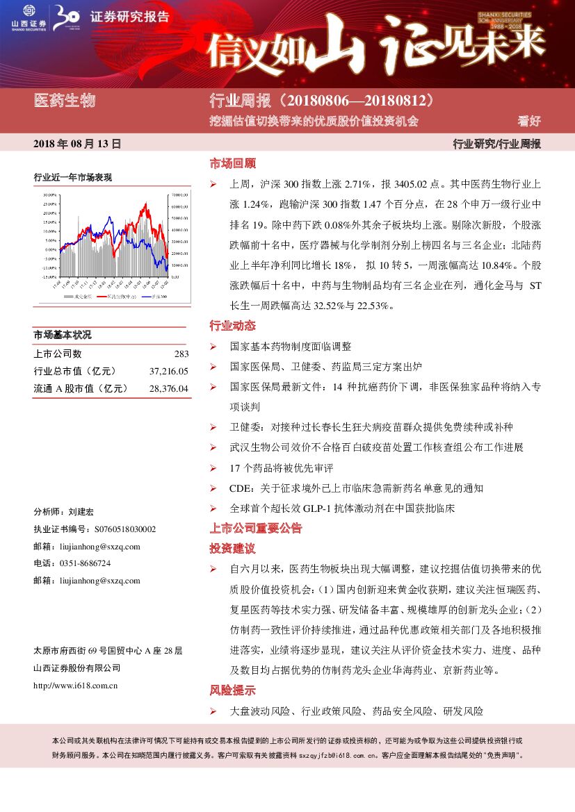 山西证券:医药生物行业周报:挖掘估值切换带来的优质股价值投资机会.pdf