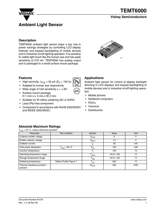 VISHAY - TEMT6000 数据手册.pdf