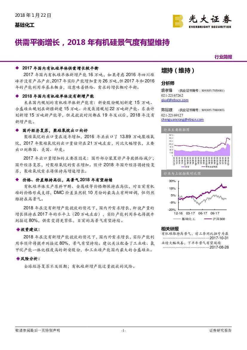 光大证券:基础化工行业简报:供需平衡增长,2018年有机硅景气度有望维持.pdf