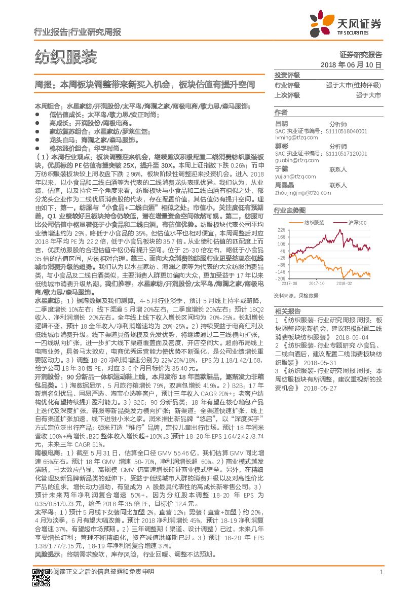 天风证券:纺织服装行业研究周报;本周板块调整带来新买入机会,板块估值有提升空间.pdf
