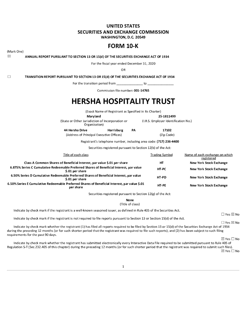 Hersha Hospitality Trust(HT)2020财年年度报告(英文版).pdf
