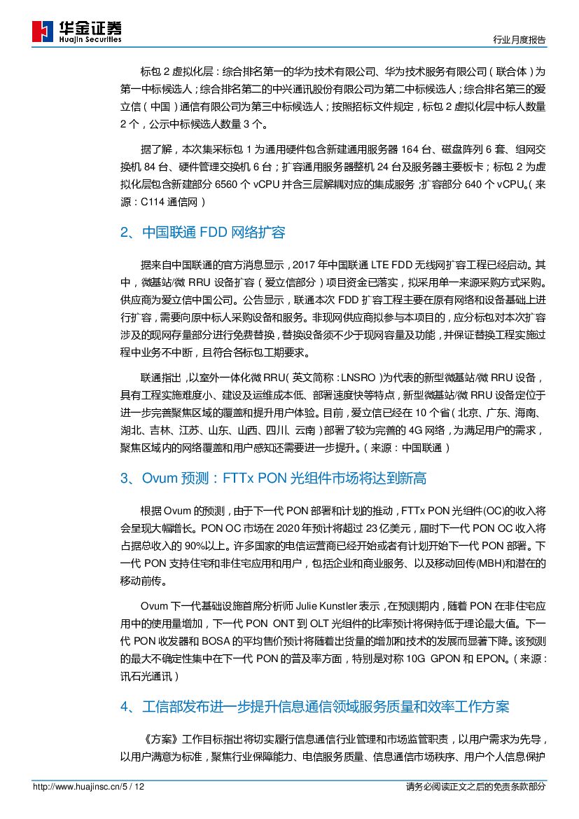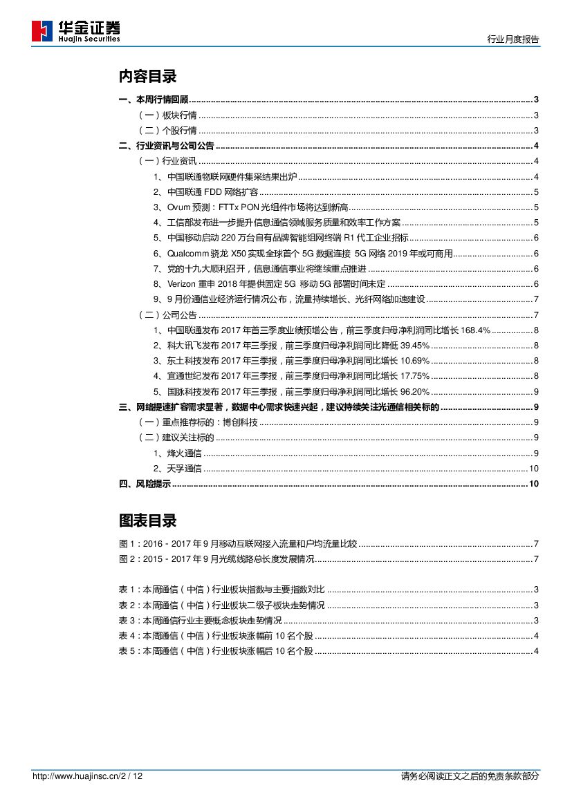 华金证券:通信行业月度报告:十九大助力信息通信行业发展,建议持续关注光通信板块重点标的.pdf