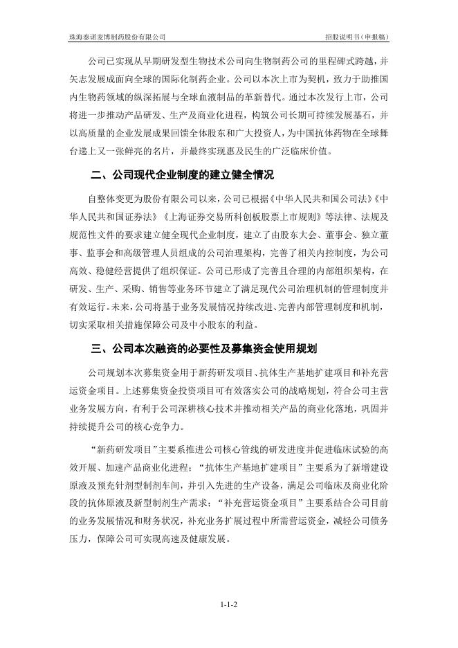珠海泰诺麦博制药股份有限公司科创板IPO上市招股说明书.pdf