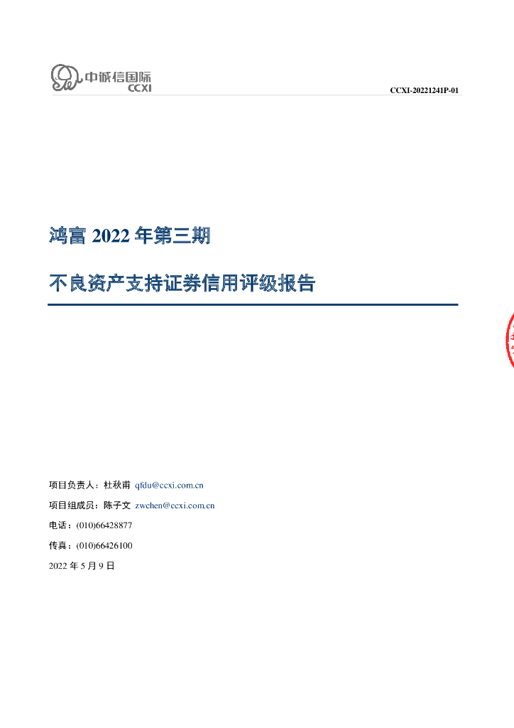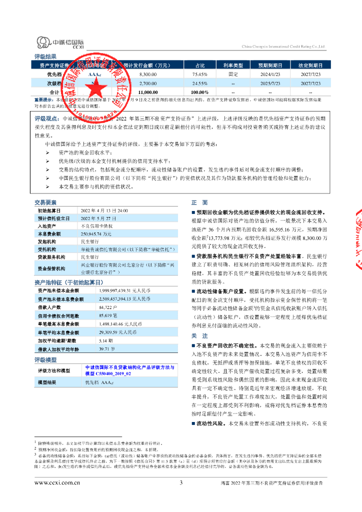 中诚信:鸿富2022年第三期不良资产支持证券信用评级报告.pdf