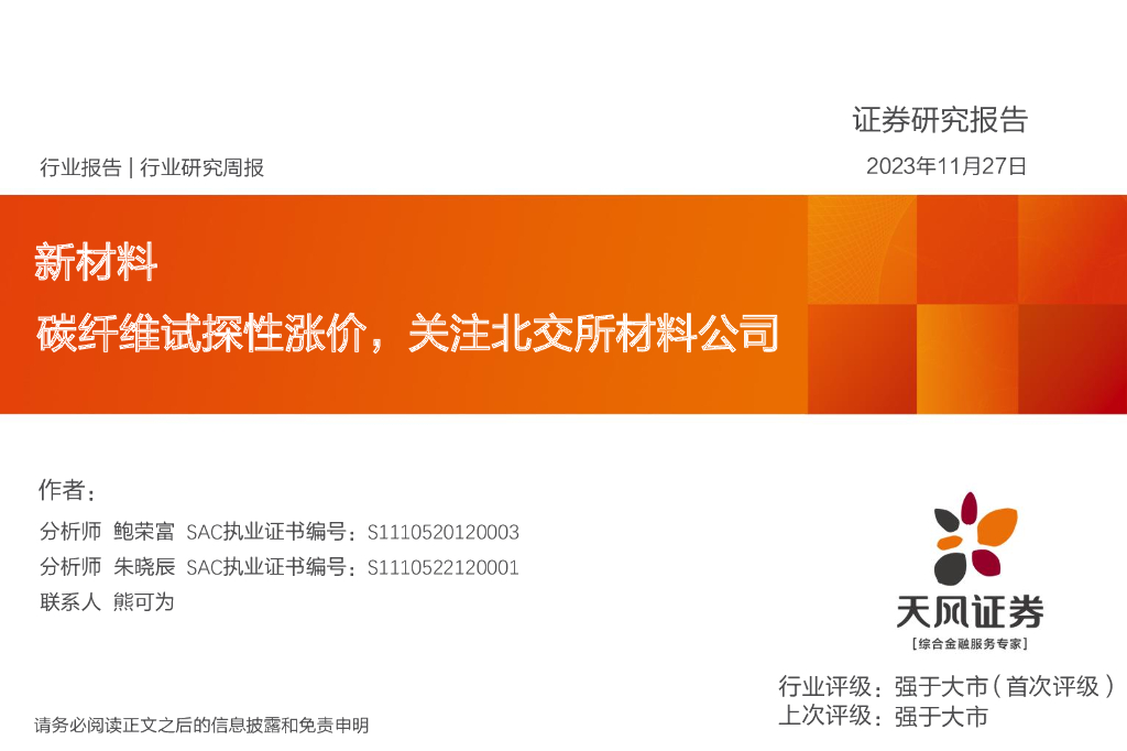 天风证券:新材料行业研究周报:碳纤维试探性涨价,关注北交所材料公司.pdf
