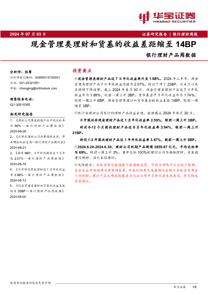 华宝证券:银行理财产品周数据:现金管理类理财和货基的收益差距缩至14BP.pdf