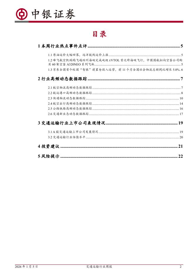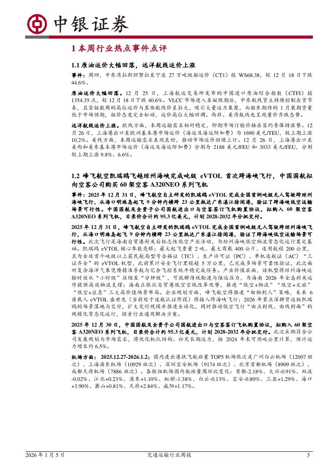 中银证券:交通运输行业周报:国航拟向空客采购60架空客A320系列飞机,前11个月全国社会物流总额同比增长5.0%.pdf