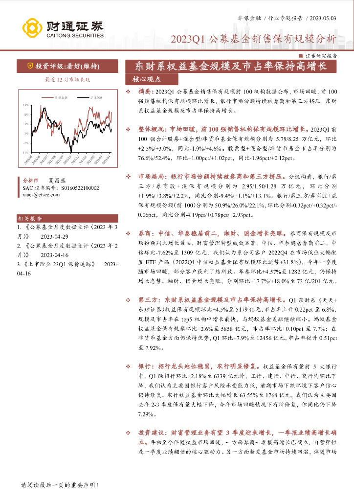 财通证券:非银金融:2023Q1公募基金销售保有规模分析-东财系权益基金规模及市占率保持高增长.pdf