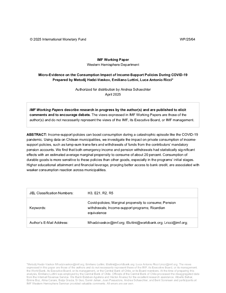国际货币基金组织:新冠肺炎期间收入支持政策对消费影响的微观证据(英文版).pdf