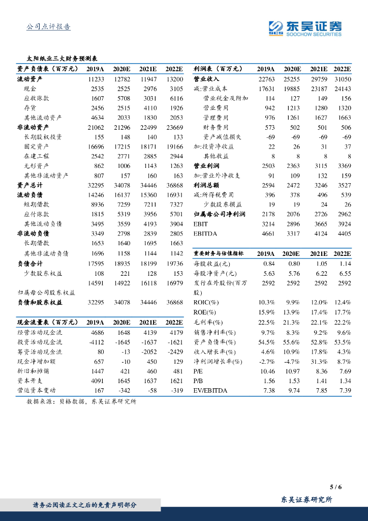 东吴证券:太阳纸业(002078)-19年年报表现靓丽,持续看好造纸龙头中期成长.pdf