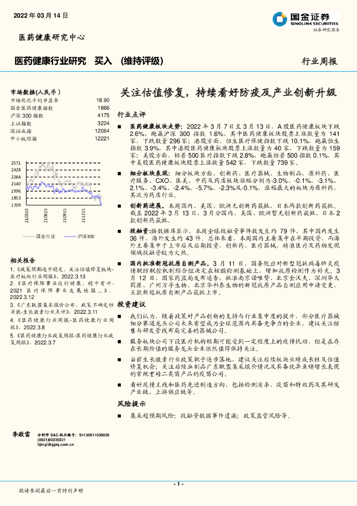 国金证券:医药健康行业研究:关注估值修复,持续看好防疫及产业创新升级.pdf