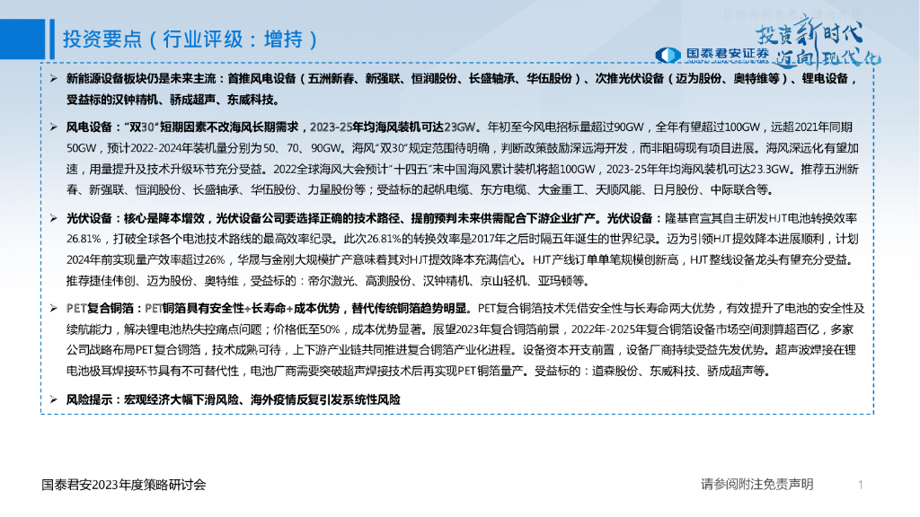 国泰君安:高端装备行业2023年度投资策略之一:新能源设备高景气,把握新一轮能源革命机遇.pdf
