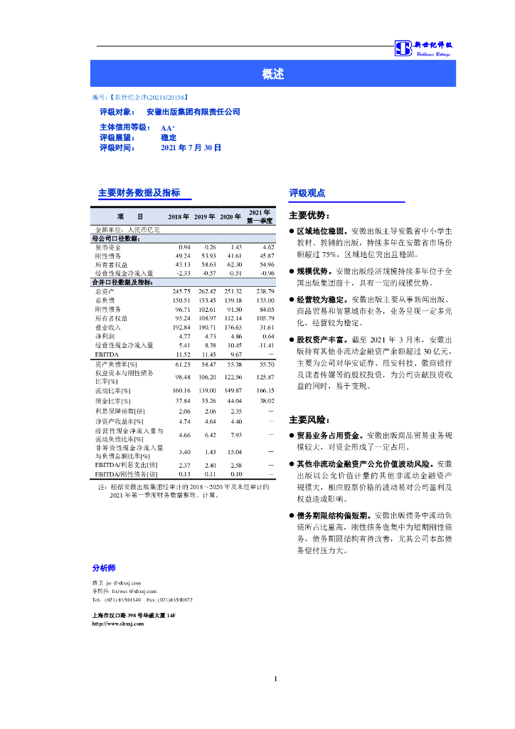 新世纪:安徽出版集团有限责任公司信用评级报告.pdf