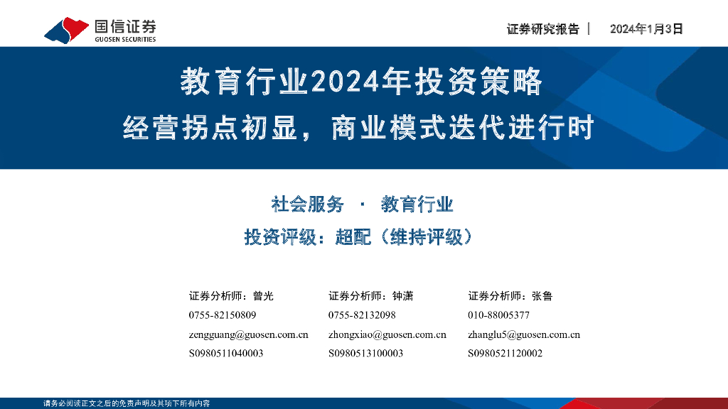 国信证券:教育行业2024年投资策略:经营拐点初显,商业模式迭代进行时.pdf