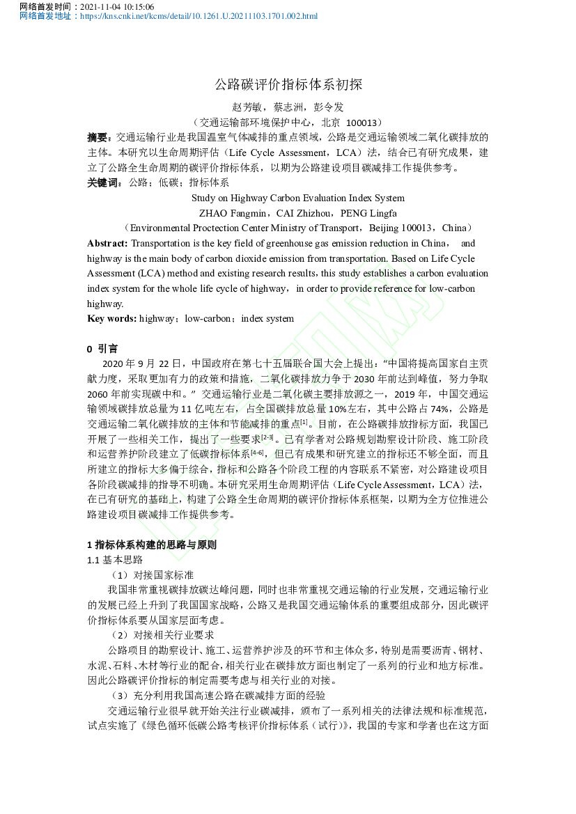 交通运输部:公路碳评价指标体系初探.pdf