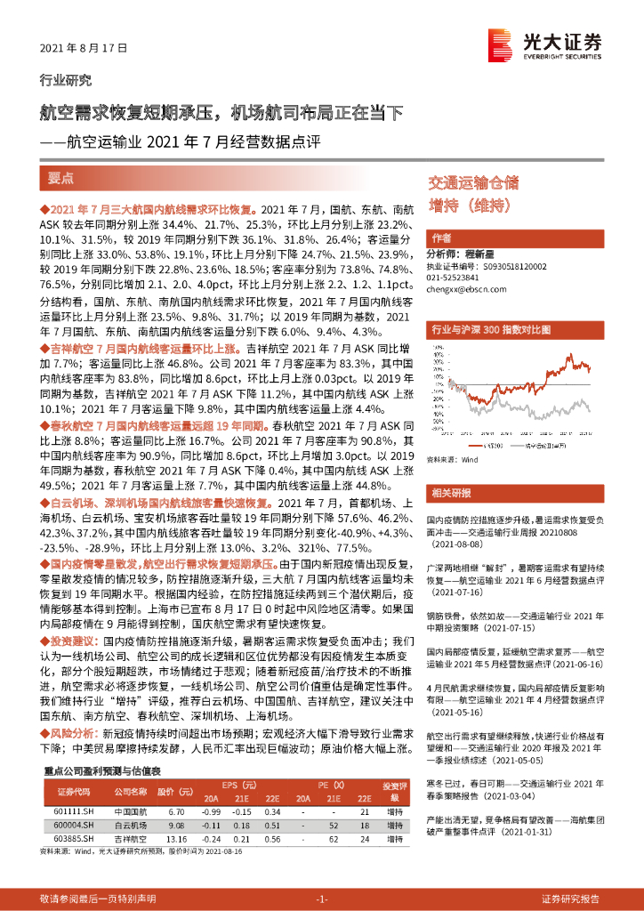 光大证券:航空运输业2021年7月经营数据点评:航空需求恢复短期承压,机场航司布局正在当下.pdf