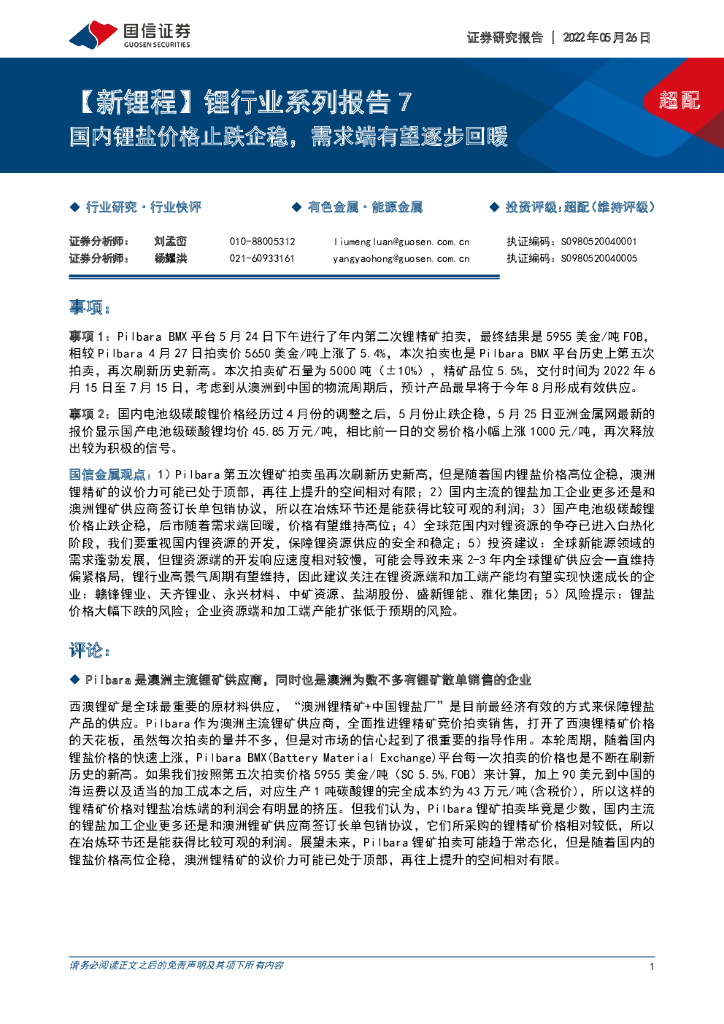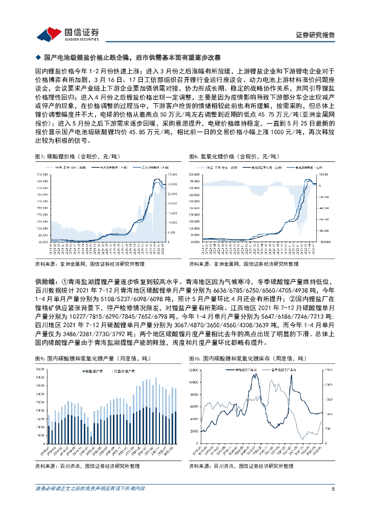 国信证券:【新锂程】锂行业系列报告7:国内锂盐价格止跌企稳,需求端有望逐步回暖.pdf