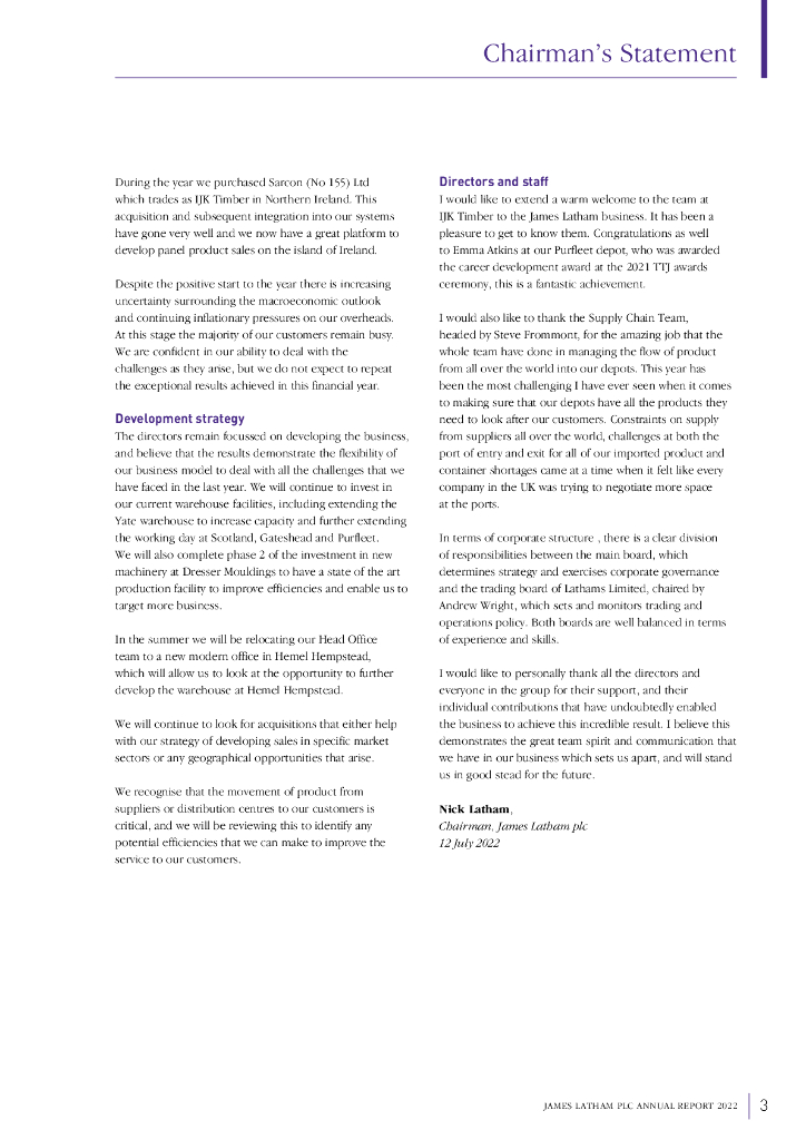 James Latham Plc(LTHM)2022财年年度报告(英文版).pdf
