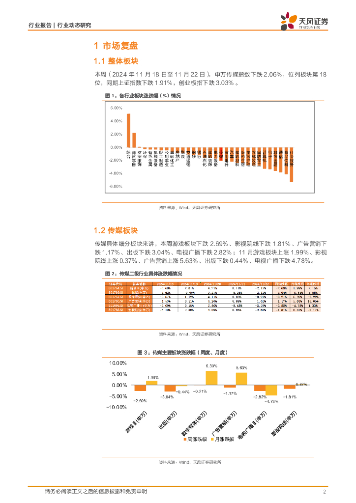 天风证券:传媒行业周报第46周:美股AI应用端公司业绩超预期,关注A股传媒应用端进展.pdf