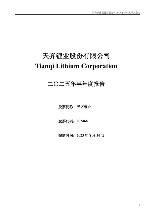 002466-天齐锂业:2025年半年度报告.pdf
