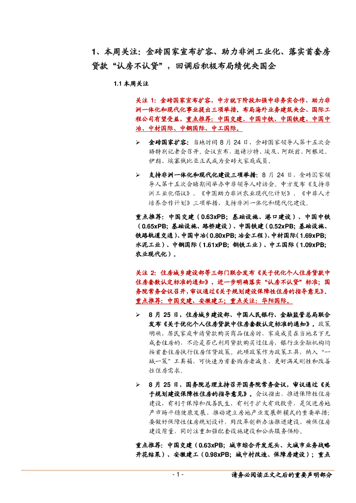 中泰证券:建筑行业周报:金砖国家宣布扩容、助力非洲工业化、首套房贷款“认房不认贷”,回调后积极布局绩优央国企.pdf