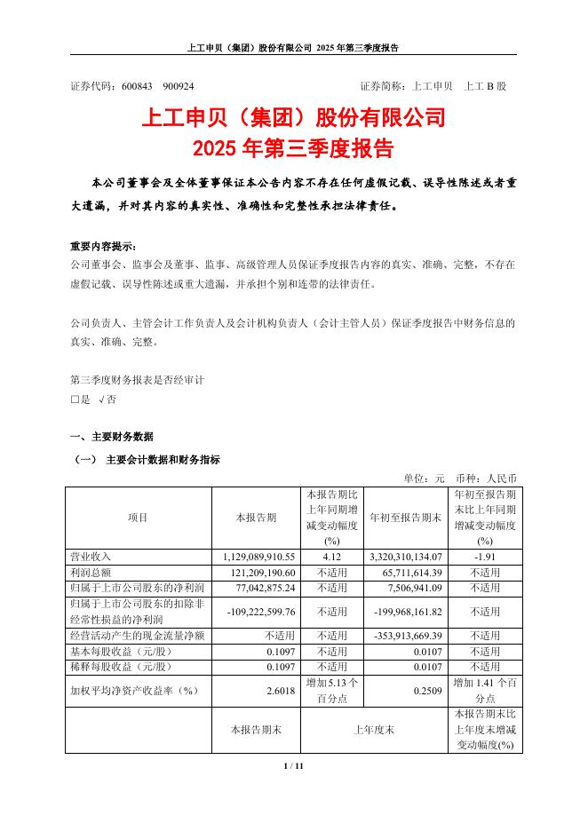 600843-上工申贝:上工申贝(集团)股份有限公司2025年第三季度报告.pdf