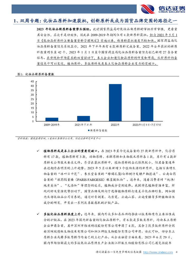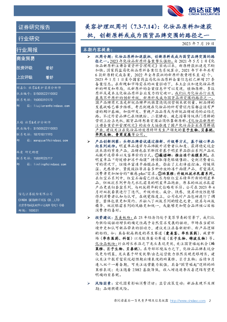 信达证券:美容护理双周刊:化妆品原料加速获批,创新原料或成为国货品牌突围的路径之一.pdf