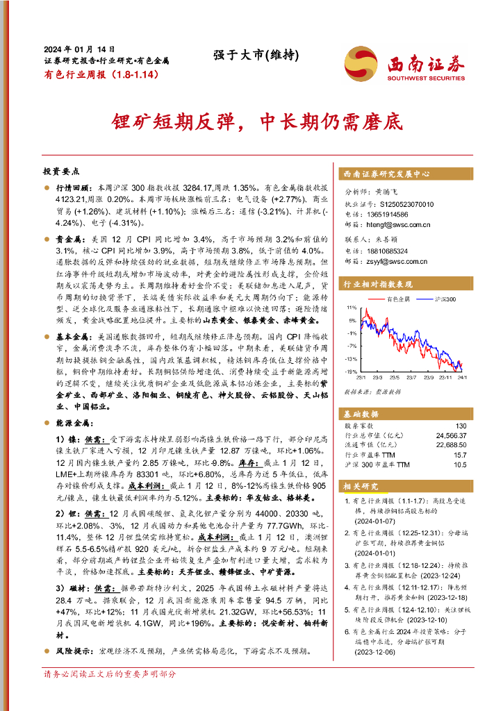 西南证券:有色行业周报:锂矿短期反弹,中长期仍需磨底.pdf