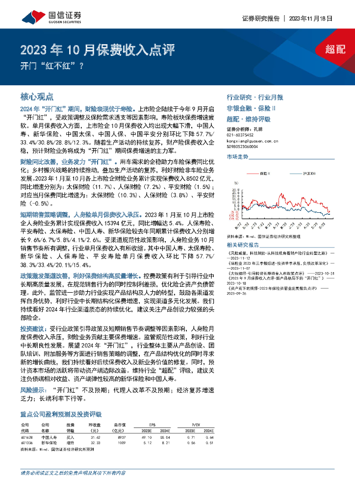 国信证券:非银金融:2023年10月保费收入点评:开门“红不红”?.pdf