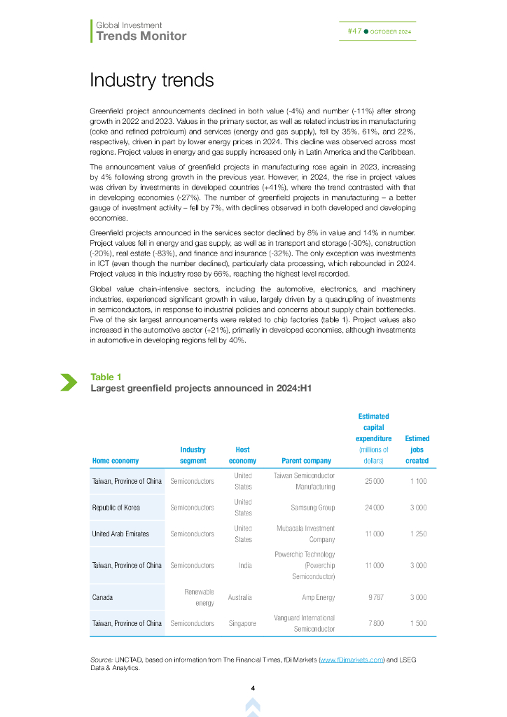 UNCTAD联合国贸易和发展会议:2024年第47期全球投资趋势监测报告(英文版).pdf