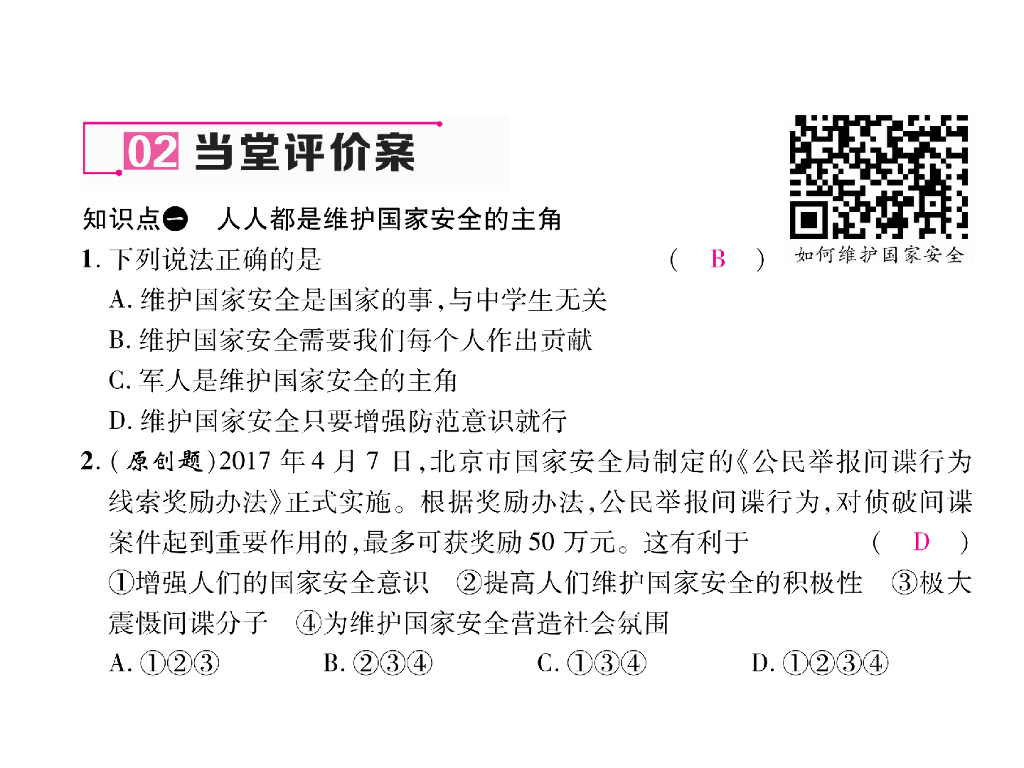 八年级道德与法治上册同步作业课件:第9课 树立总体国家安全观 第2课时 维护国家安全 (26张).ppt