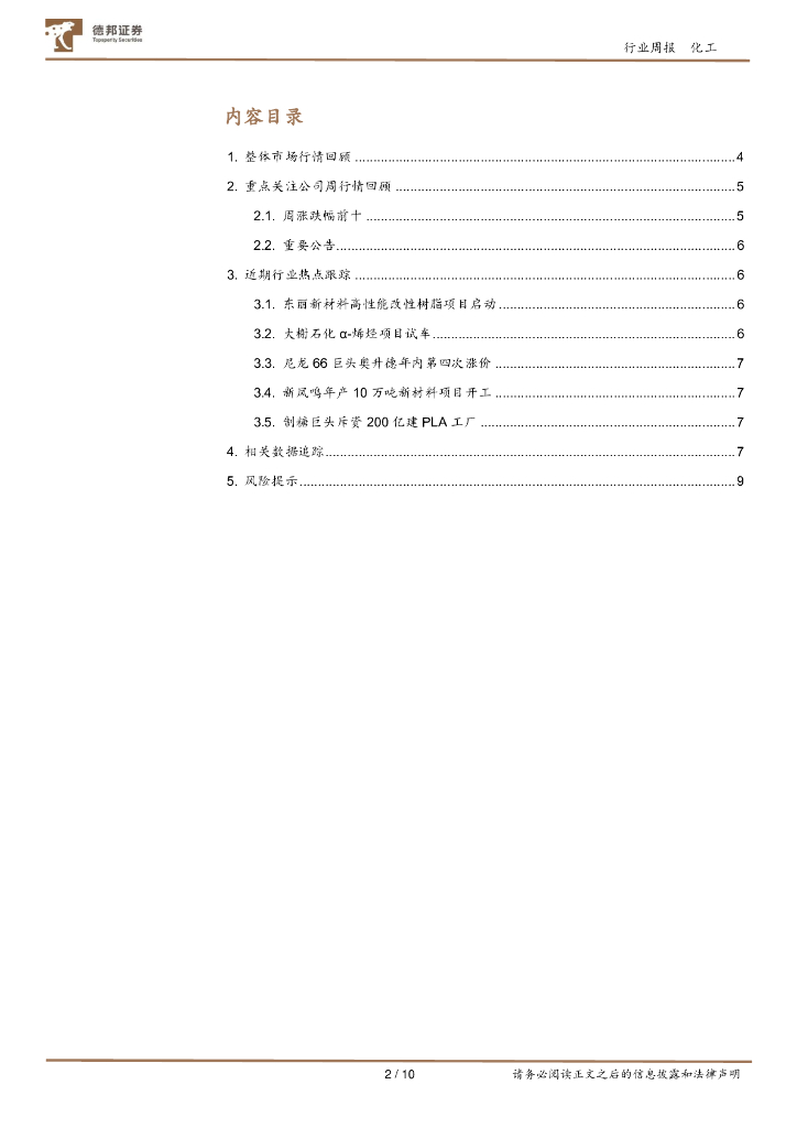 德邦证券:化工新材料行业周报:东丽新材料高性能改性树脂项目启动,新凤鸣年产10万吨新材料项目开工.pdf