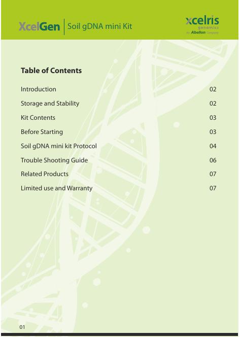 Soil gDNA mini Kit XG2413-01 XcelGen Ver.0.0/11 土壤基因组DNA纯化试剂盒 用户指南.pdf